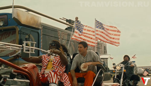 Во время вылазки на поля чувак на крыше автобуса строчит из пулемета, но его лента с патронами не движется.
